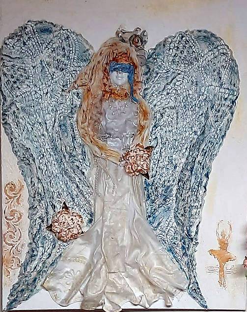 obraz „anjel spravodlivosti“ zhotovený technikou Paverpol, patinovaný akrylom