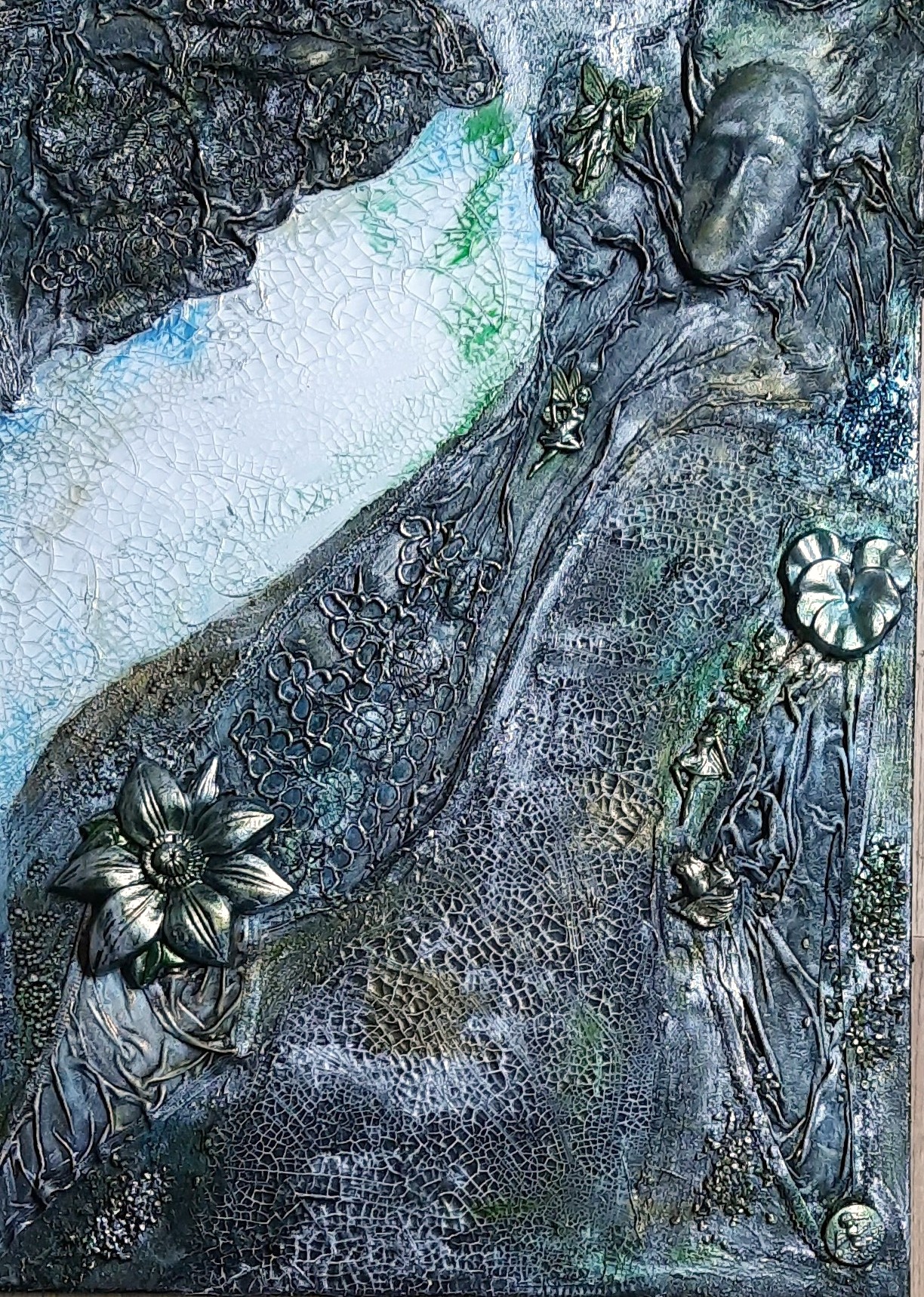 obraz cesta poznania zhotovený technikou Paverpol, patinovaný akrylom