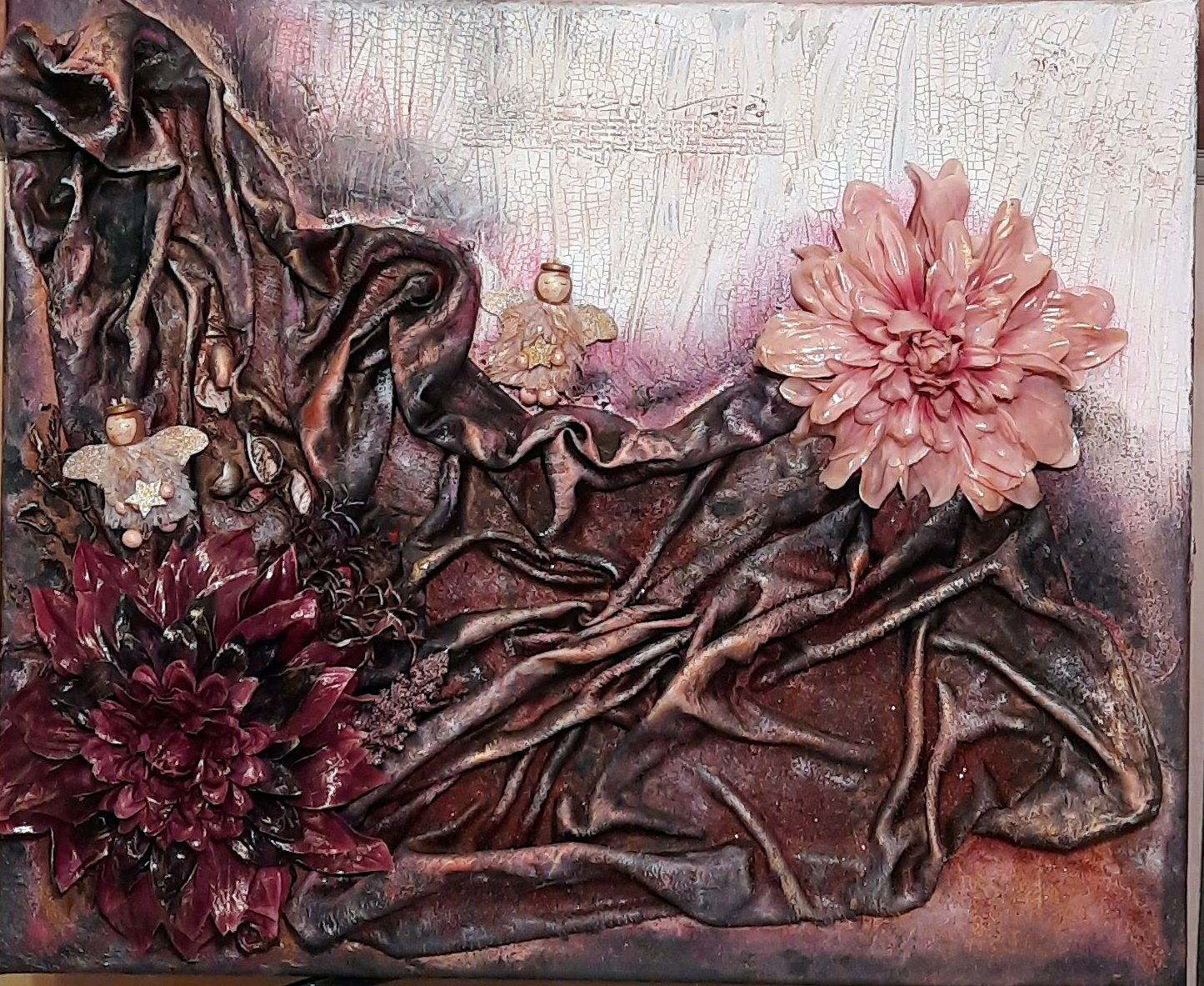obraz zhotovený technikou Paverpol, patinovaný akrylom