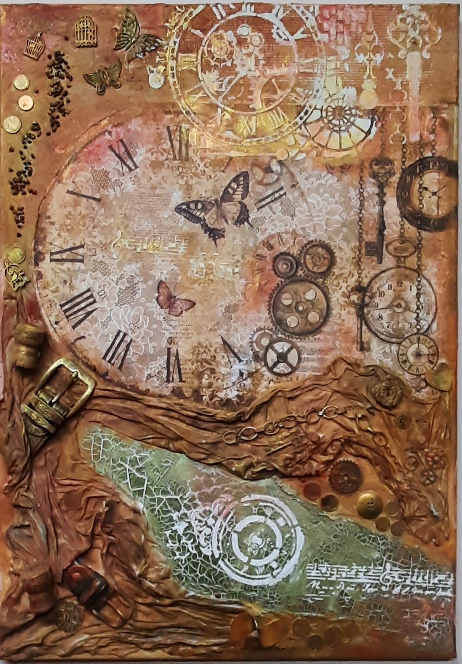 obraz „Premeny v čase“ je vytvorený kombinovanou technikou mixed média.