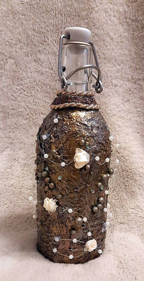 Dekoračná a zároveň funkčná fľaša vytvorená technikou paverpol