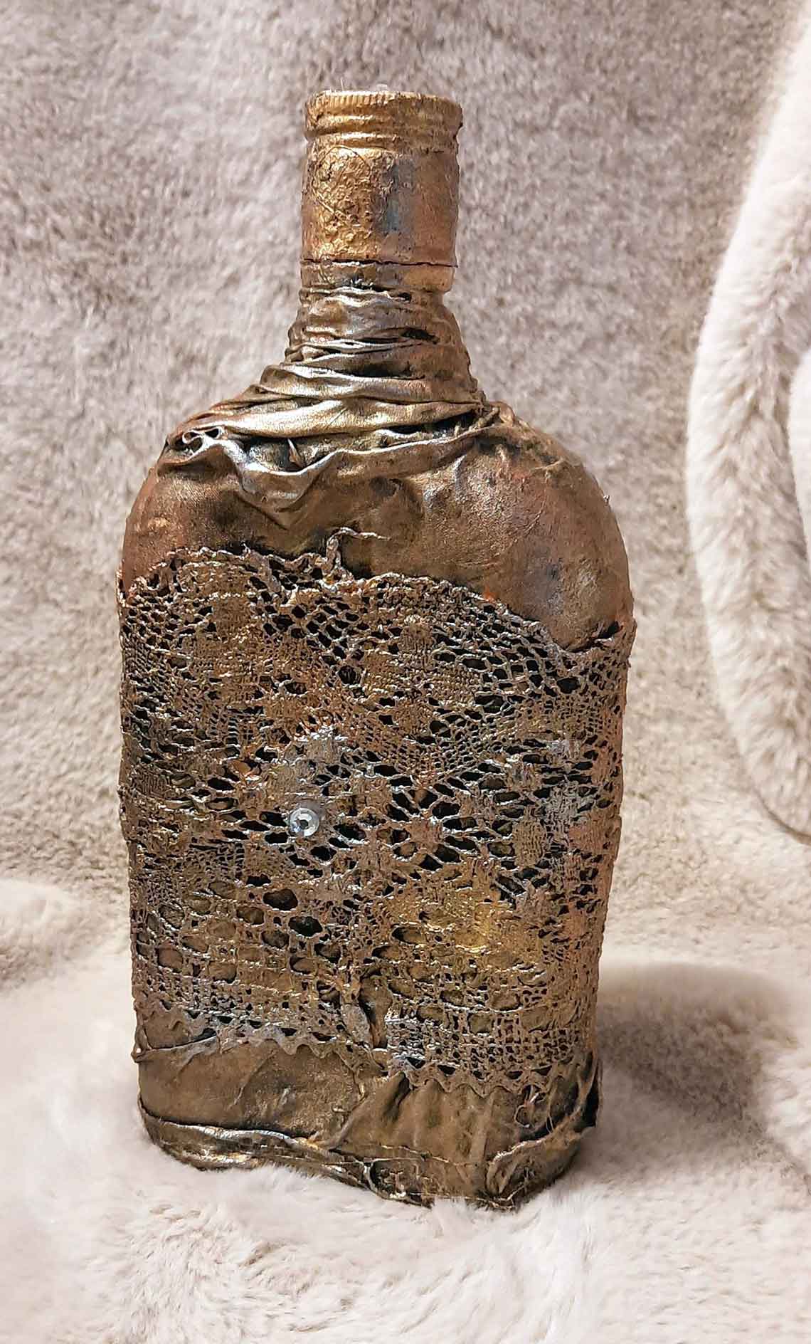Dekoračná a zároveň funkčná, uzatvárateľná fľaša vytvorená technikou paverpol