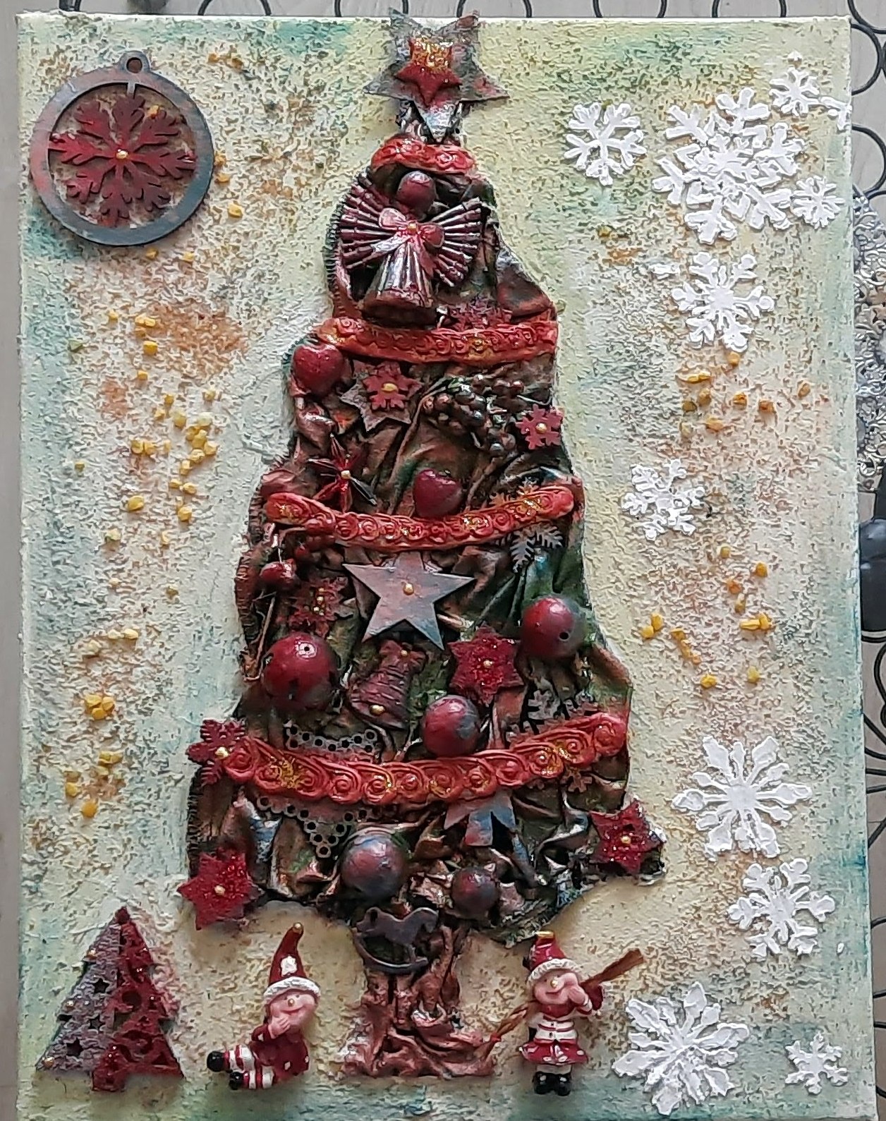 obraz „vianočný“ zhotevený technikou Paverpol, patinovaný akrylom
