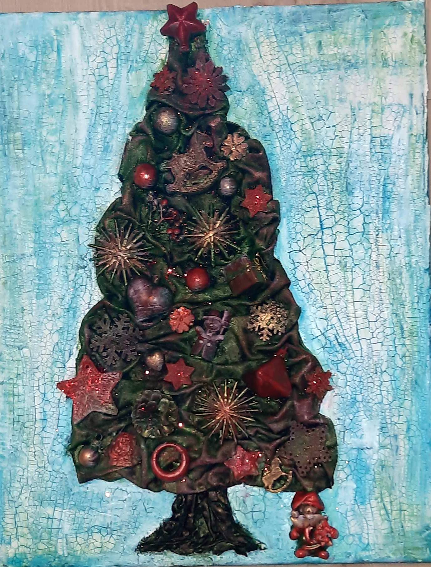 obraz „vianočný“ zhotovený technikou Paverpol, patinovaný akrylom