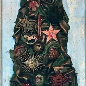 obraz Zlatá pyramída zhotovený kombinovanou technikou paverpol, akryl, obdivovaný na autorskej výstave „Tajomný svet“ v Bratislavskej BC Kerametal office gallery,